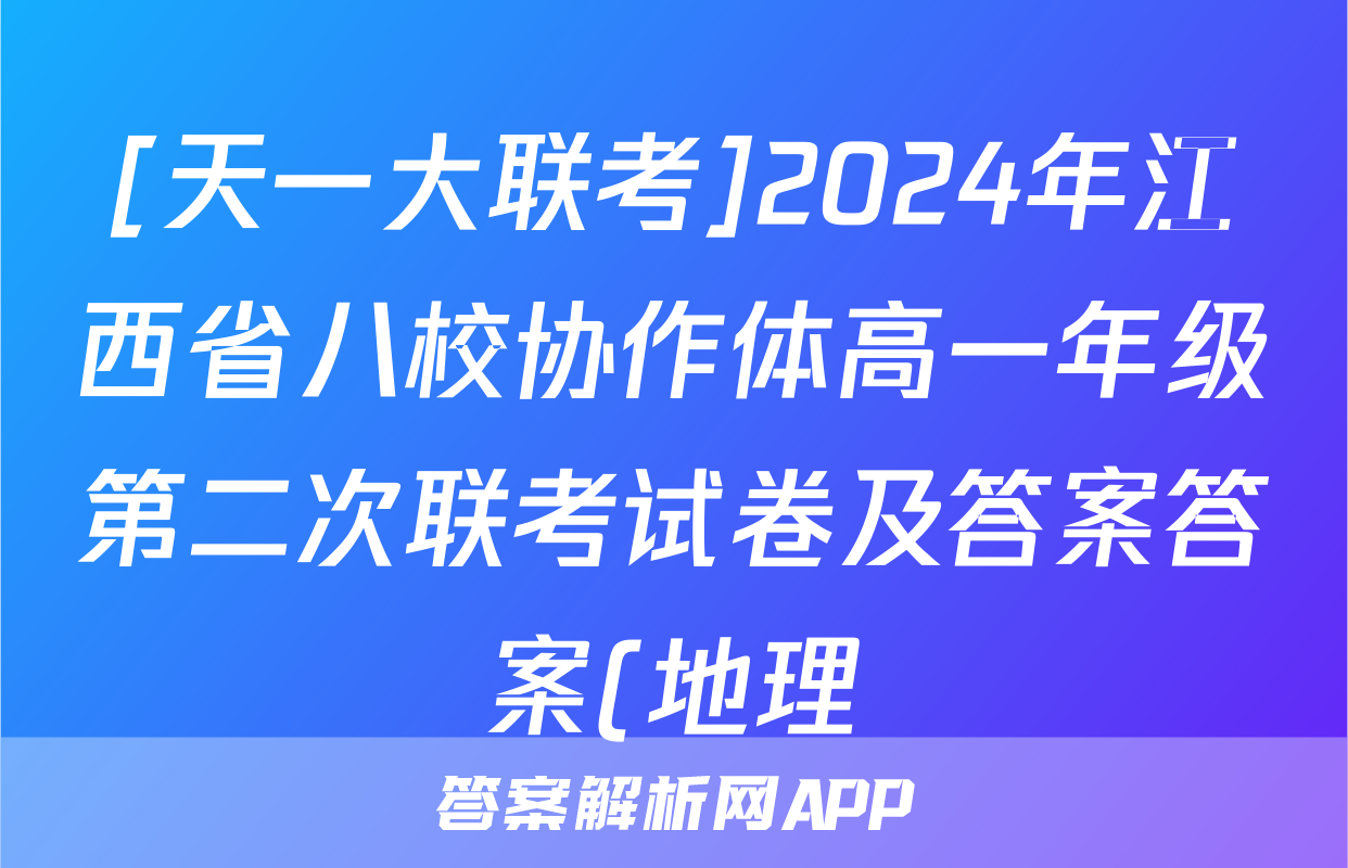 [天一大联考]2024年江西省八校协作体高一年级第二次联考试卷及答案答案(地理)正在持续更新,目前2026天舟高考答案网为大家整理了相关试题及答案,供大家查缺补漏,高效提升成绩。