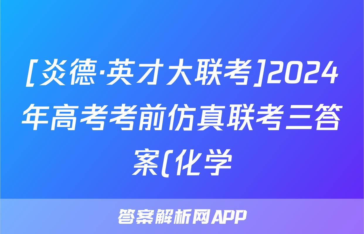 [炎德·英才大联考]2024年高考考前仿真联考三答案(化学)正在持续更新,目前2026天舟高考答案网为大家整理了相关试题及答案,供大家查缺补漏,高效提升成绩。