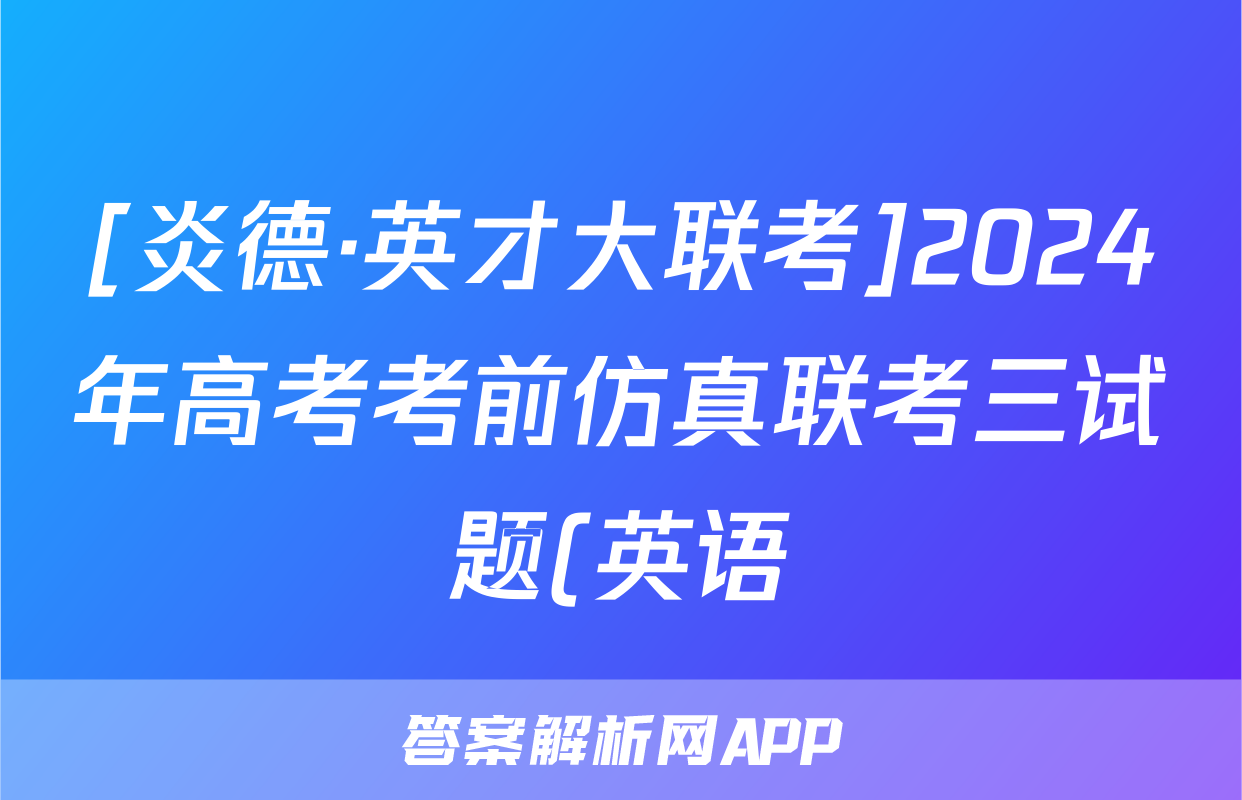 [炎德·英才大联考]2024年高考考前仿真联考三试题(英语)正在持续更新,目前2026天舟高考答案网为大家整理了相关试题及答案,供大家查缺补漏,高效提升成绩。