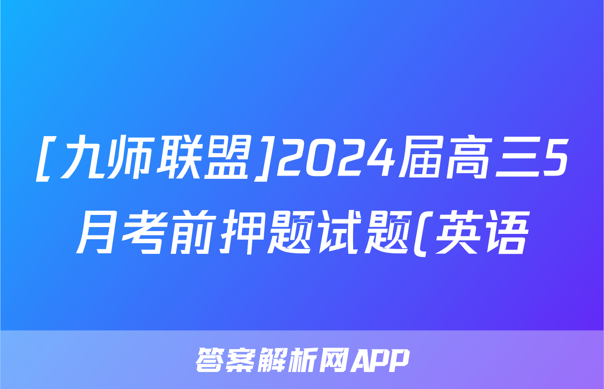 [九师联盟]2024届高三5月考前押题试题(英语)正在持续更新,目前2026天舟高考答案网为大家整理了相关试题及答案,供大家查缺补漏,高效提升成绩。