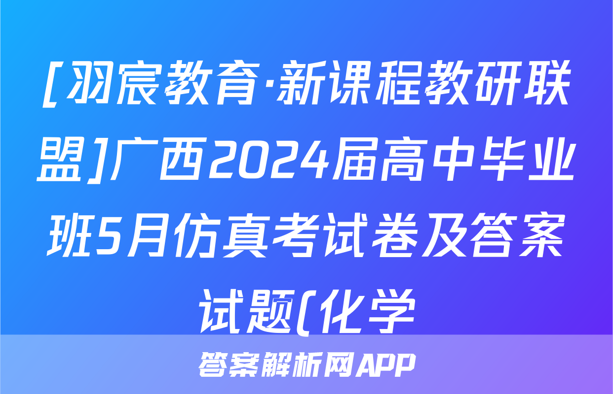 [羽宸教育·新课程教研联盟]广西2024届高中毕业班5月仿真考试卷及答案试题(化学)正在持续更新,目前2026天舟高考答案网为大家整理了相关试题及答案,供大家查缺补漏,高效提升成绩。