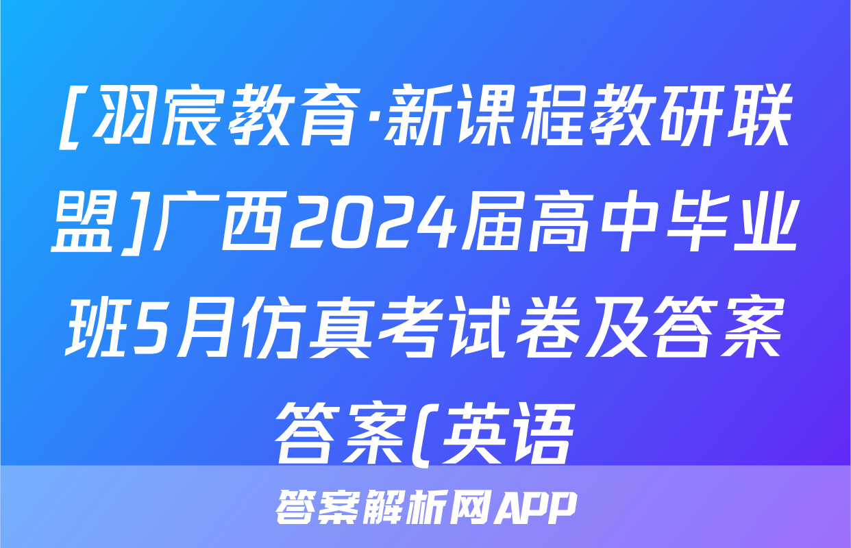 [羽宸教育·新课程教研联盟]广西2024届高中毕业班5月仿真考试卷及答案答案(英语)正在持续更新,目前2026天舟高考答案网为大家整理了相关试题及答案,供大家查缺补漏,高效提升成绩。