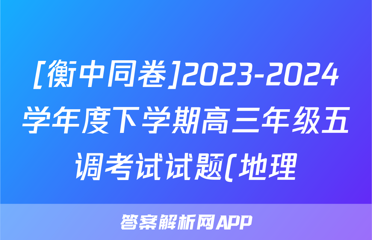[衡中同卷]2023-2024学年度下学期高三年级五调考试试题(地理)正在持续更新,目前2026天舟高考答案网为大家整理了相关试题及答案,供大家查缺补漏,高效提升成绩。
