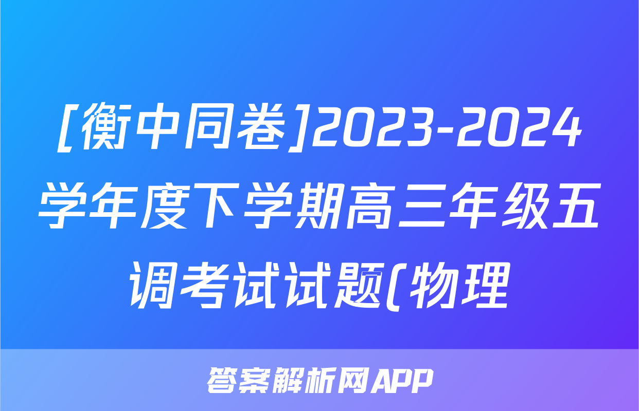 [衡中同卷]2023-2024学年度下学期高三年级五调考试试题(物理)正在持续更新,目前2026天舟高考答案网为大家整理了相关试题及答案,供大家查缺补漏,高效提升成绩。