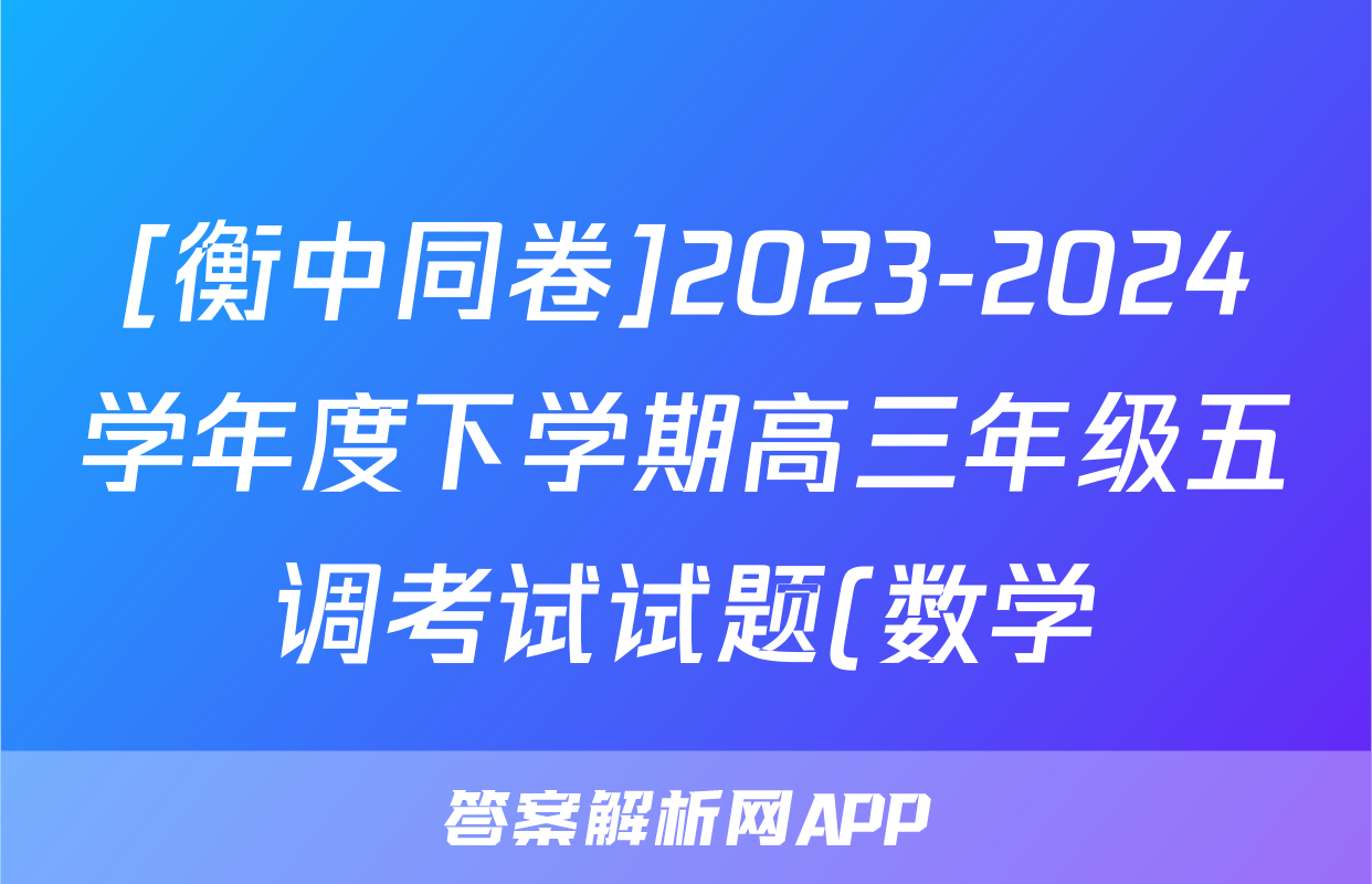 [衡中同卷]2023-2024学年度下学期高三年级五调考试试题(数学)正在持续更新,目前2026天舟高考答案网为大家整理了相关试题及答案,供大家查缺补漏,高效提升成绩。