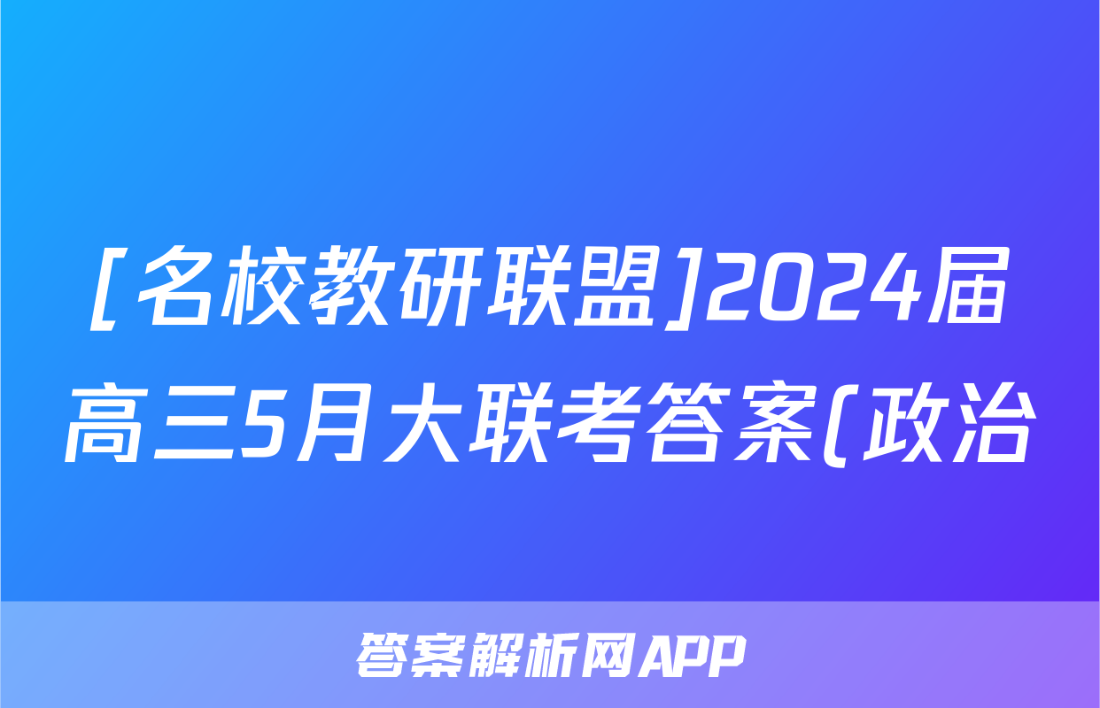 [名校教研联盟]2024届高三5月大联考答案(政治)正在持续更新,目前2026天舟高考答案网为大家整理了相关试题及答案,供大家查缺补漏,高效提升成绩。