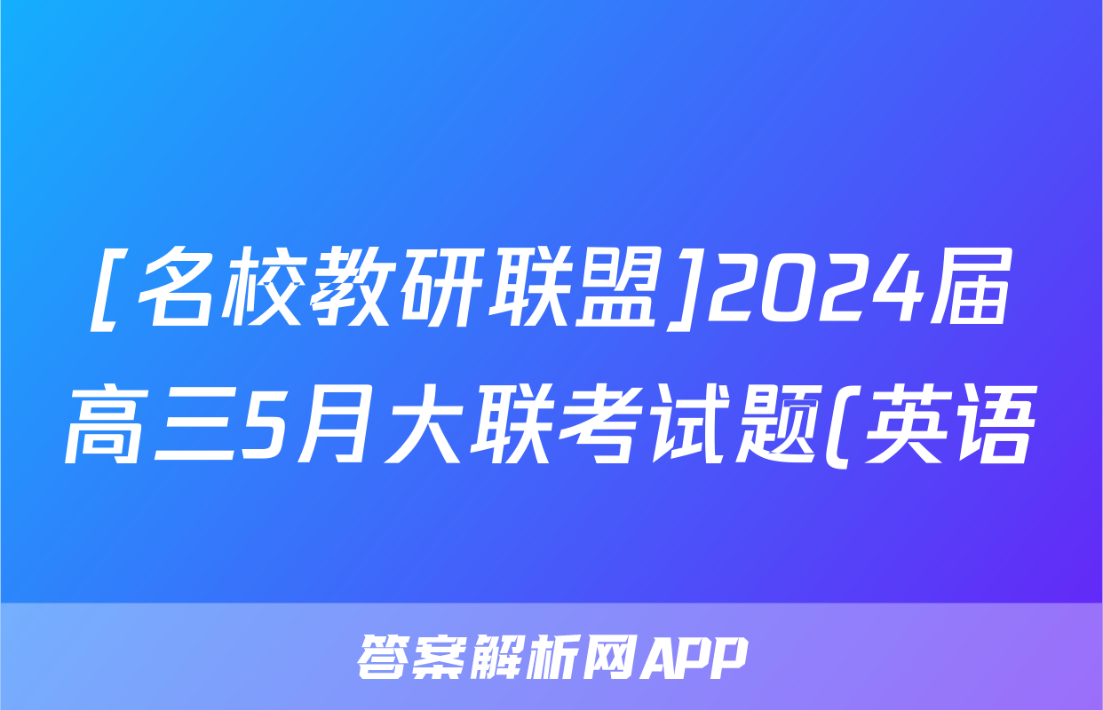 [名校教研联盟]2024届高三5月大联考试题(英语)正在持续更新,目前2026天舟高考答案网为大家整理了相关试题及答案,供大家查缺补漏,高效提升成绩。