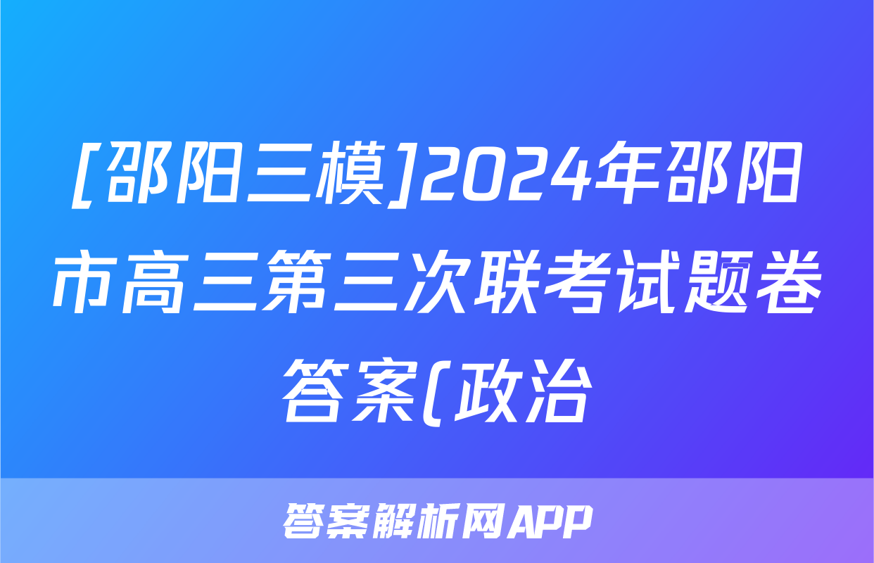 [邵阳三模]2024年邵阳市高三第三次联考试题卷答案(政治)正在持续更新,目前2026天舟高考答案网为大家整理了相关试题及答案,供大家查缺补漏,高效提升成绩。