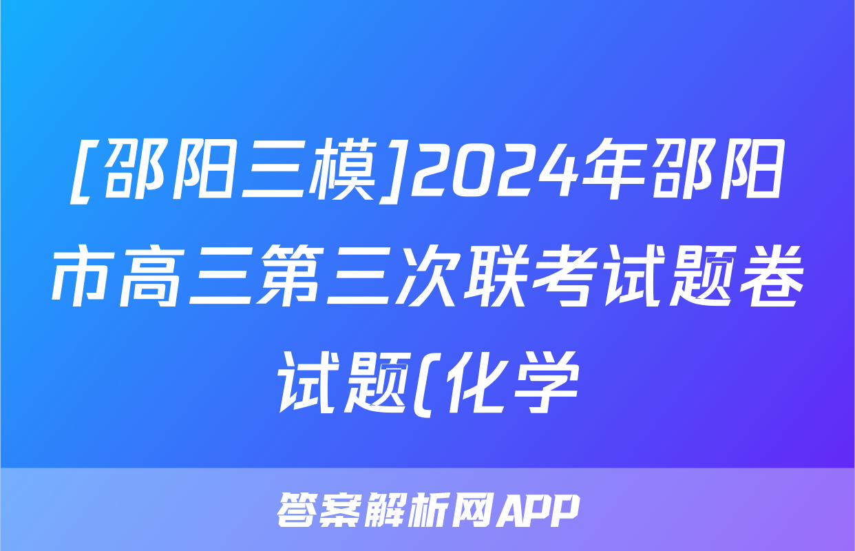 [邵阳三模]2024年邵阳市高三第三次联考试题卷试题(化学)正在持续更新,目前2026天舟高考答案网为大家整理了相关试题及答案,供大家查缺补漏,高效提升成绩。