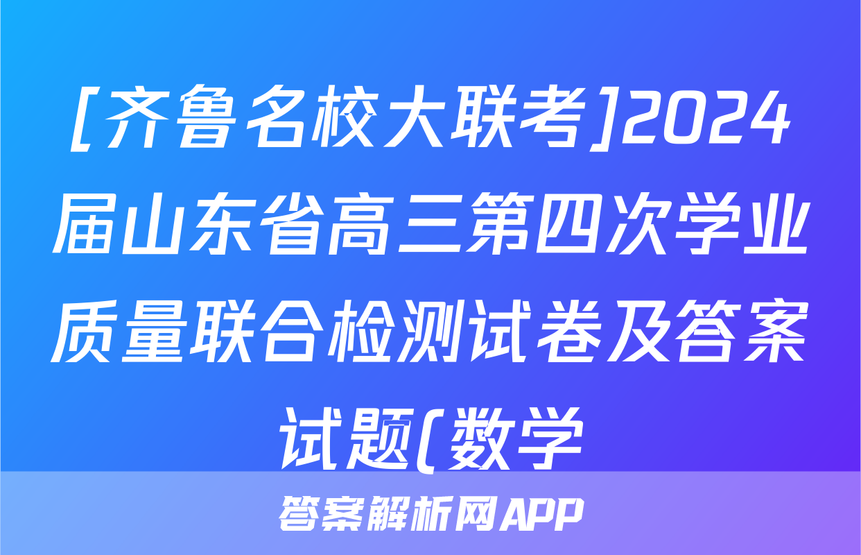 [齐鲁名校大联考]2024届山东省高三第四次学业质量联合检测试卷及答案试题(数学)正在持续更新,目前2026天舟高考答案网为大家整理了相关试题及答案,供大家查缺补漏,高效提升成绩。