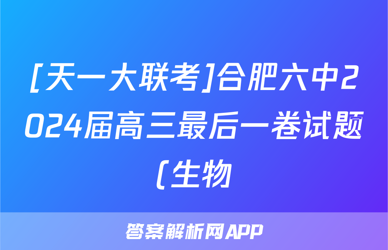 [天一大联考]合肥六中2024届高三最后一卷试题(生物)正在持续更新,目前2026天舟高考答案网为大家整理了相关试题及答案,供大家查缺补漏,高效提升成绩。