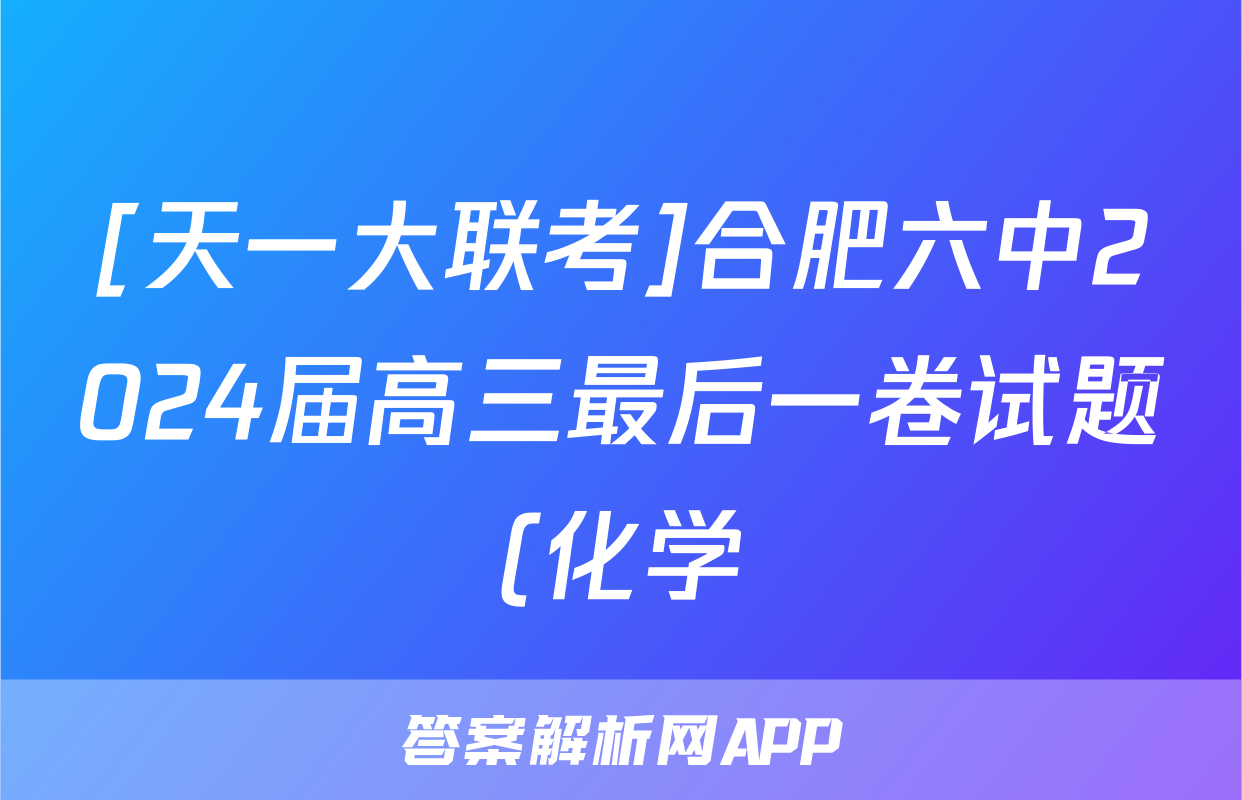 [天一大联考]合肥六中2024届高三最后一卷试题(化学)正在持续更新,目前2026天舟高考答案网为大家整理了相关试题及答案,供大家查缺补漏,高效提升成绩。