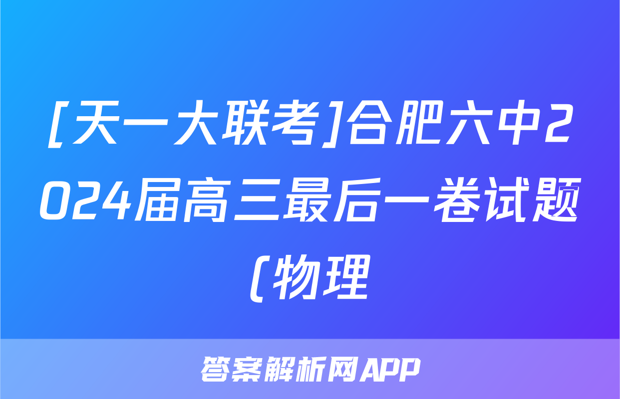 [天一大联考]合肥六中2024届高三最后一卷试题(物理)正在持续更新,目前2026天舟高考答案网为大家整理了相关试题及答案,供大家查缺补漏,高效提升成绩。