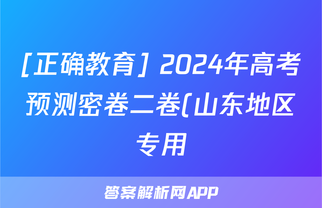 [正确教育] 2024年高考预测密卷二卷(山东地区专用)物理试题正在持续更新,目前2026天舟高考答案网为大家整理了相关试题及答案,供大家查缺补漏,高效提升成绩。