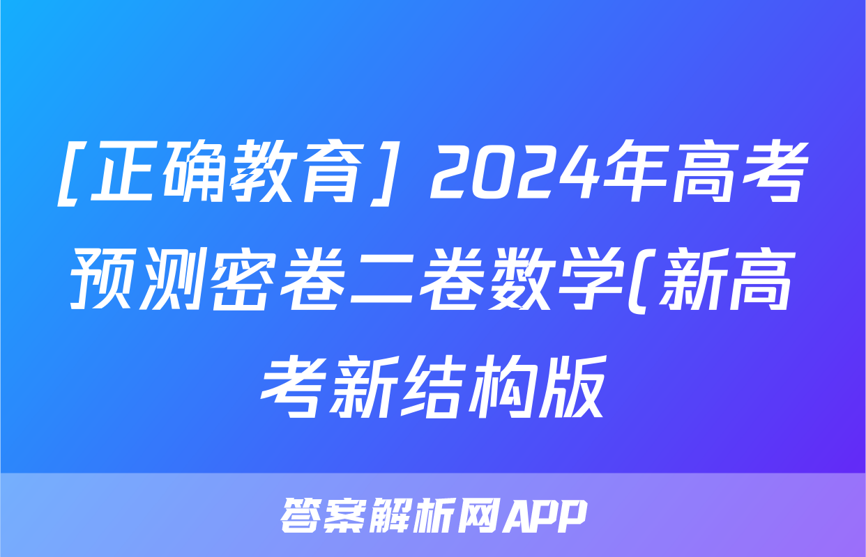 [正确教育] 2024年高考预测密卷二卷数学(新高考新结构版)试题正在持续更新,目前2026天舟高考答案网为大家整理了相关试题及答案,供大家查缺补漏,高效提升成绩。