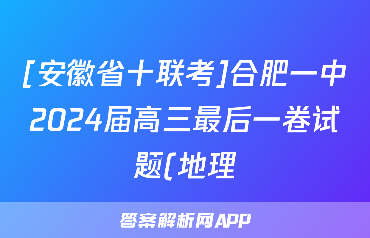 [安徽省十联考]合肥一中2024届高三最后一卷试题(地理)正在持续更新,目前2026天舟高考答案网为大家整理了相关试题及答案,供大家查缺补漏,高效提升成绩。