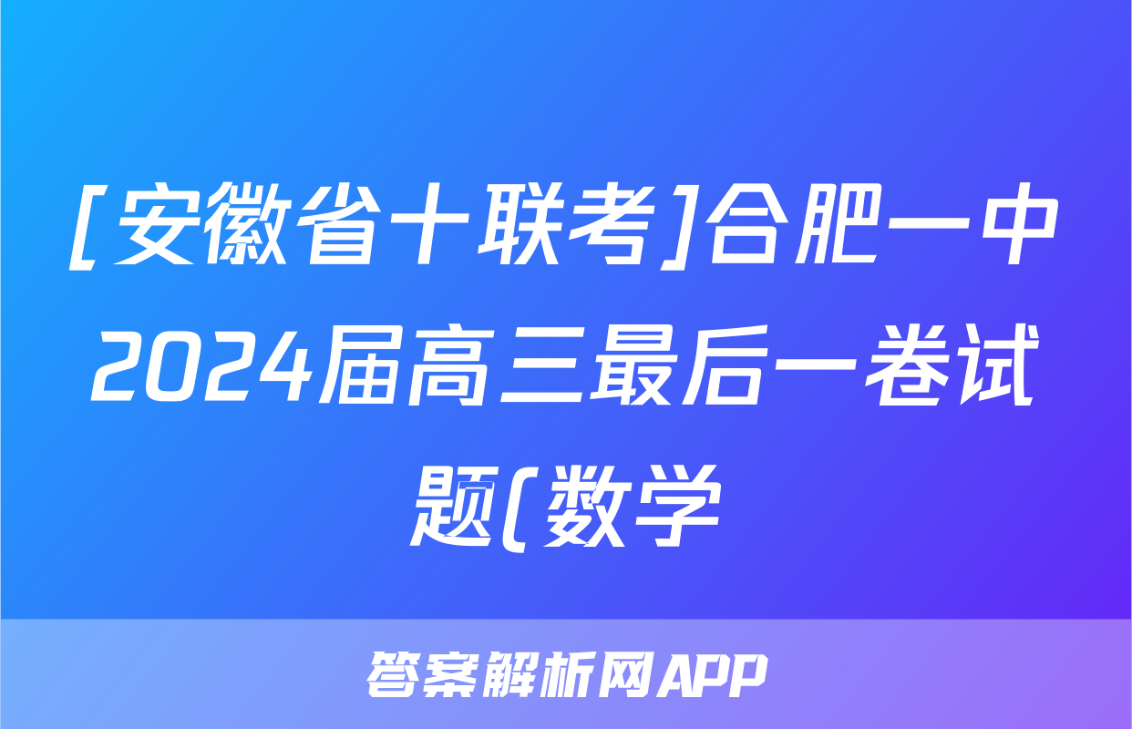 [安徽省十联考]合肥一中2024届高三最后一卷试题(数学)正在持续更新,目前2026天舟高考答案网为大家整理了相关试题及答案,供大家查缺补漏,高效提升成绩。