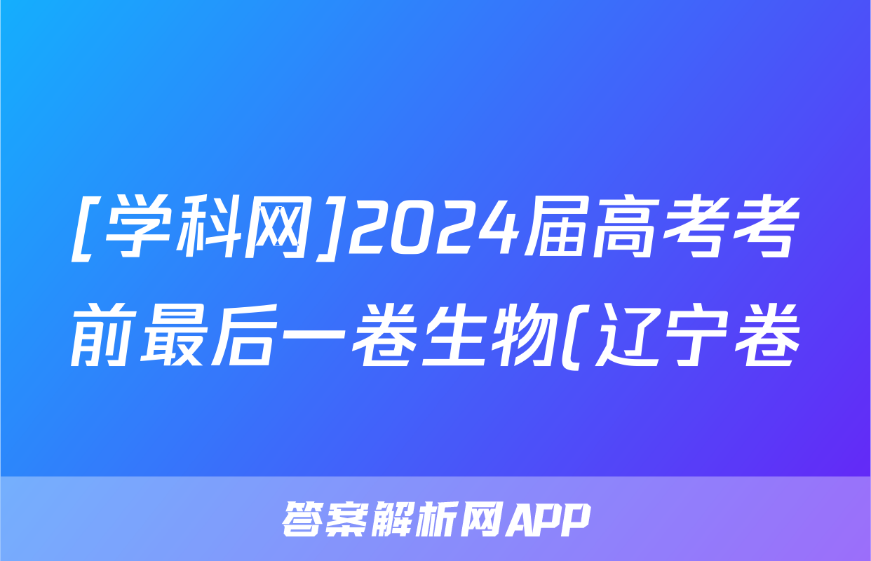 [学科网]2024届高考考前最后一卷生物(辽宁卷)试题正在持续更新,目前2026天舟高考答案网为大家整理了相关试题及答案,供大家查缺补漏,高效提升成绩。