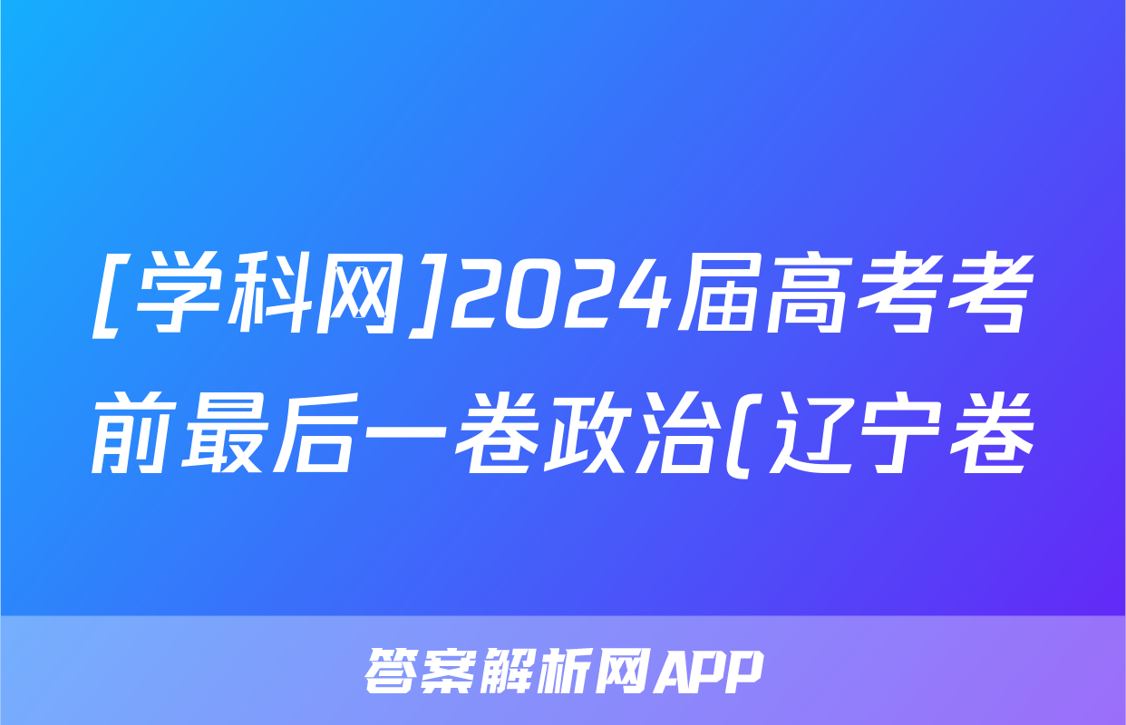 [学科网]2024届高考考前最后一卷政治(辽宁卷)试题正在持续更新,目前2026天舟高考答案网为大家整理了相关试题及答案,供大家查缺补漏,高效提升成绩。