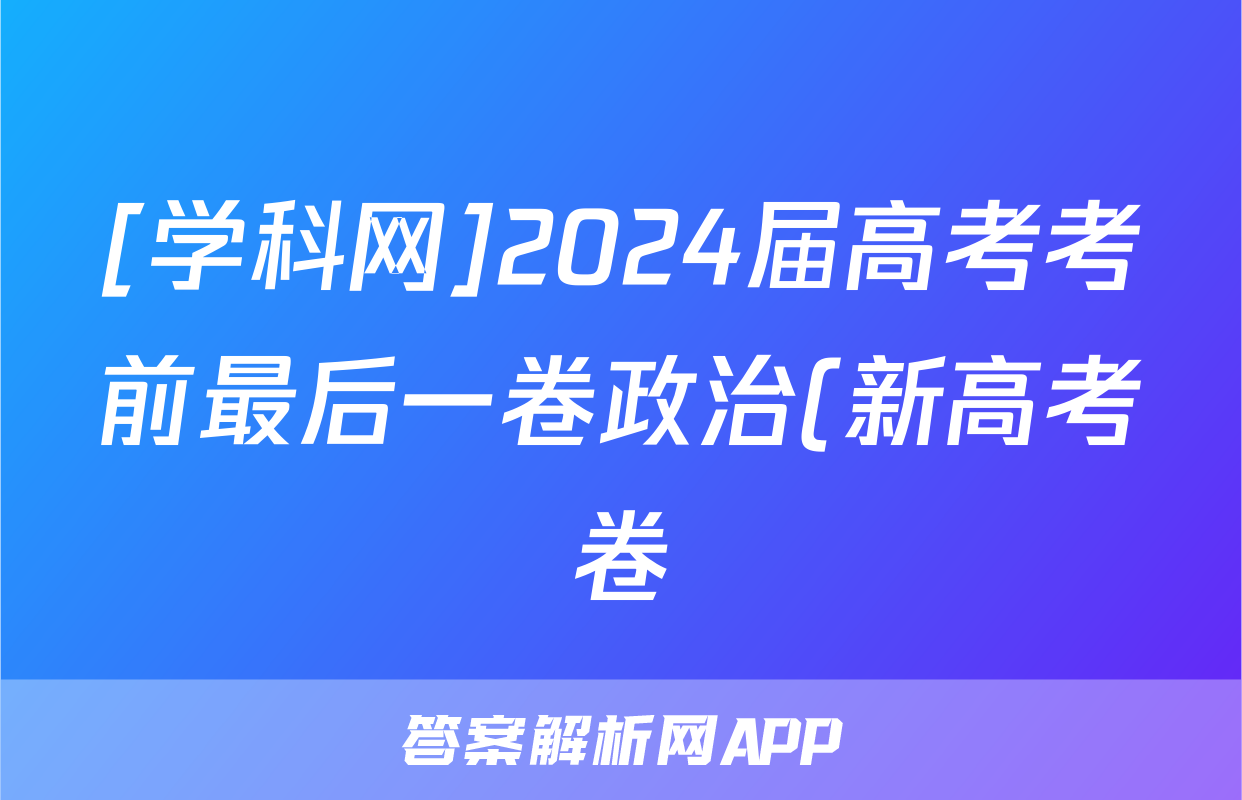 [学科网]2024届高考考前最后一卷政治(新高考卷)(新教材)答案正在持续更新,目前2026天舟高考答案网为大家整理了相关试题及答案,供大家查缺补漏,高效提升成绩。