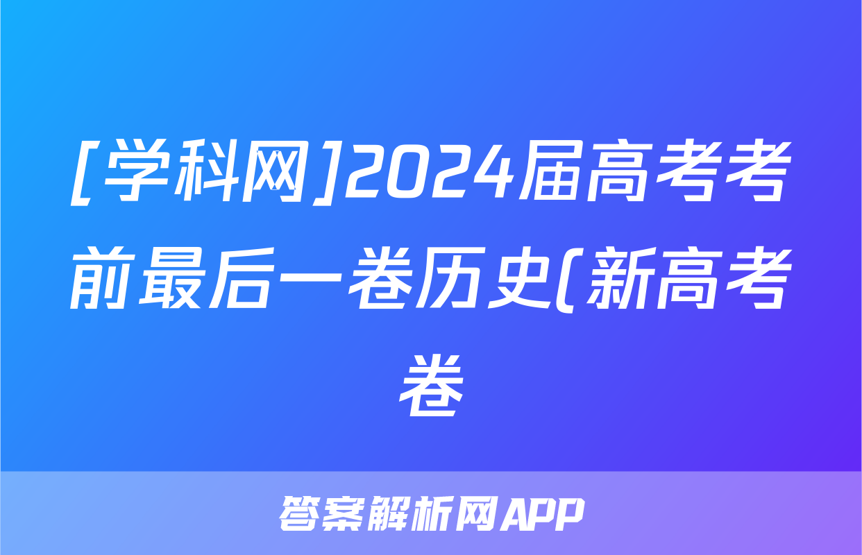 [学科网]2024届高考考前最后一卷历史(新高考卷)(新教材)试题正在持续更新,目前2026天舟高考答案网为大家整理了相关试题及答案,供大家查缺补漏,高效提升成绩。