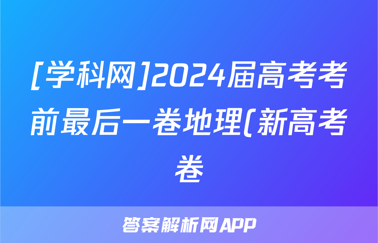 [学科网]2024届高考考前最后一卷地理(新高考卷)(新教材)试题正在持续更新,目前2026天舟高考答案网为大家整理了相关试题及答案,供大家查缺补漏,高效提升成绩。