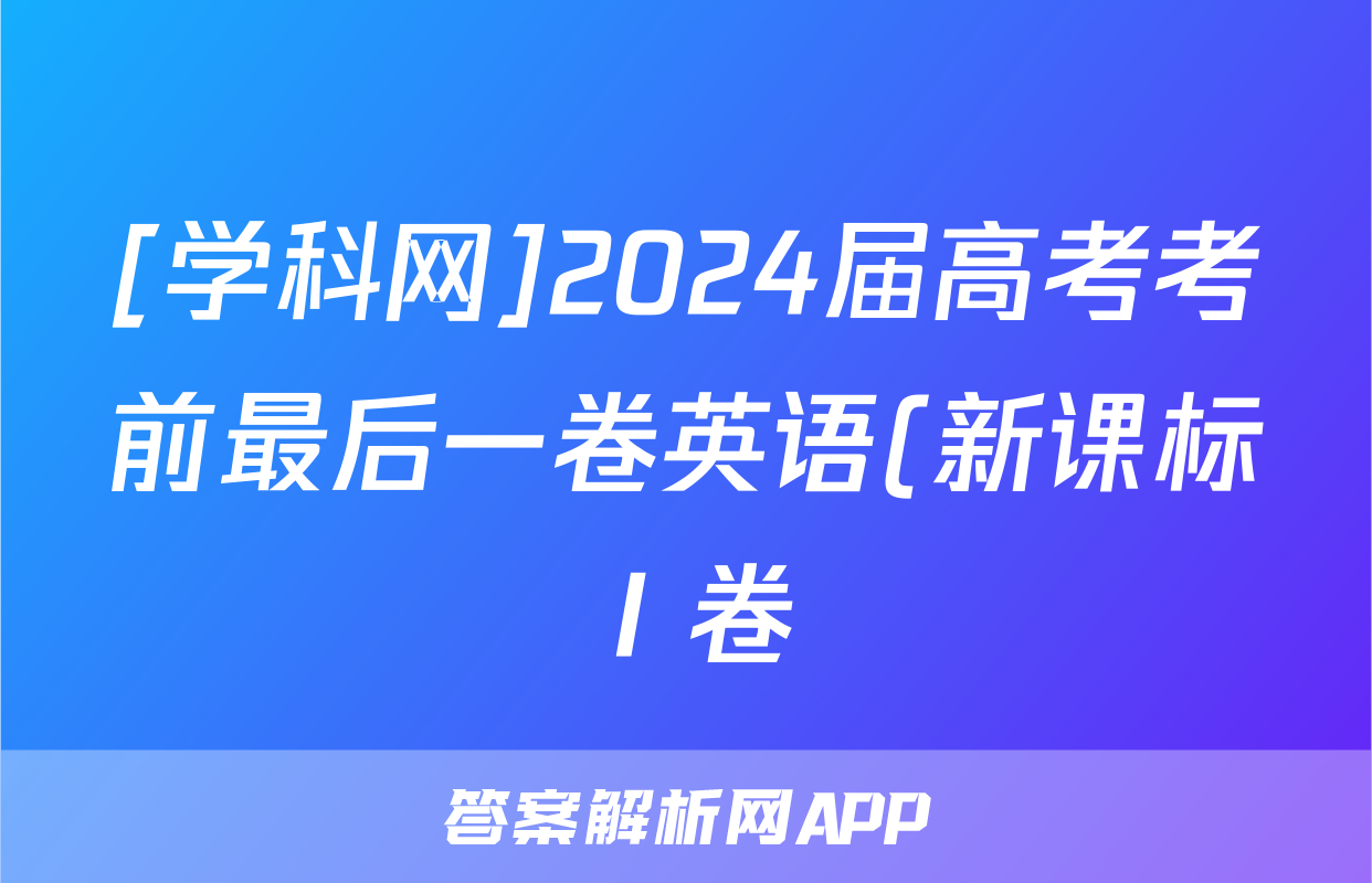[学科网]2024届高考考前最后一卷英语(新课标Ⅰ卷)(广东专用)试题正在持续更新,目前2026天舟高考答案网为大家整理了相关试题及答案,供大家查缺补漏,高效提升成绩。