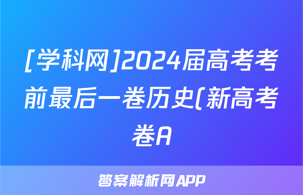 [学科网]2024届高考考前最后一卷历史(新高考卷A)(新教材)试题正在持续更新,目前2026天舟高考答案网为大家整理了相关试题及答案,供大家查缺补漏,高效提升成绩。