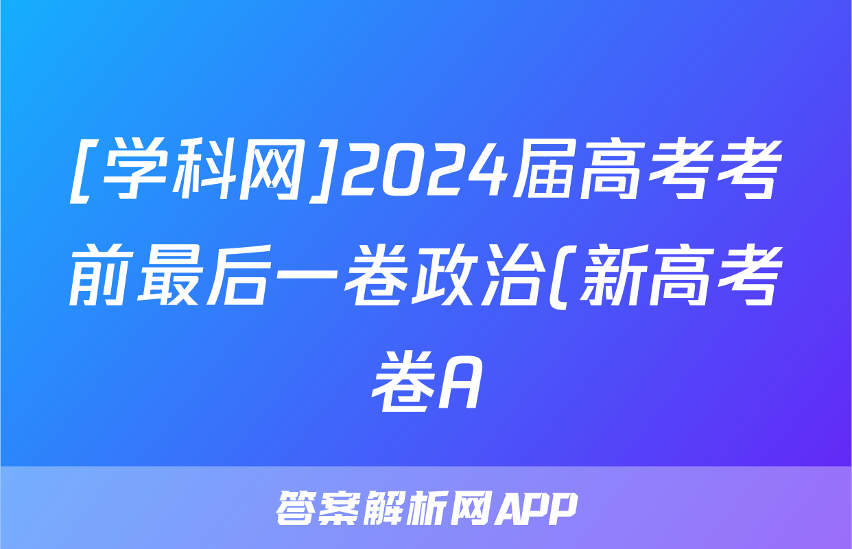 [学科网]2024届高考考前最后一卷政治(新高考卷A)(新教材)试题正在持续更新,目前2026天舟高考答案网为大家整理了相关试题及答案,供大家查缺补漏,高效提升成绩。