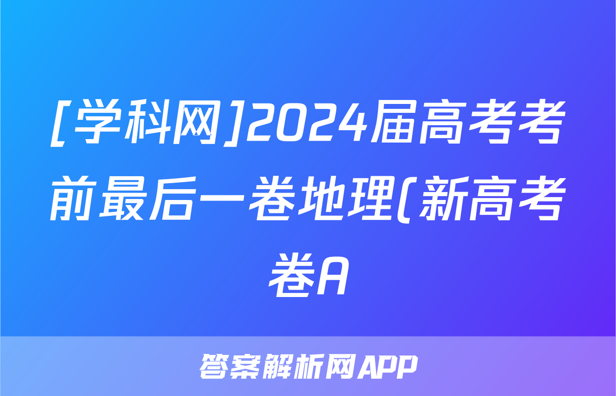[学科网]2024届高考考前最后一卷地理(新高考卷A)(新教材)试题正在持续更新,目前2026天舟高考答案网为大家整理了相关试题及答案,供大家查缺补漏,高效提升成绩。