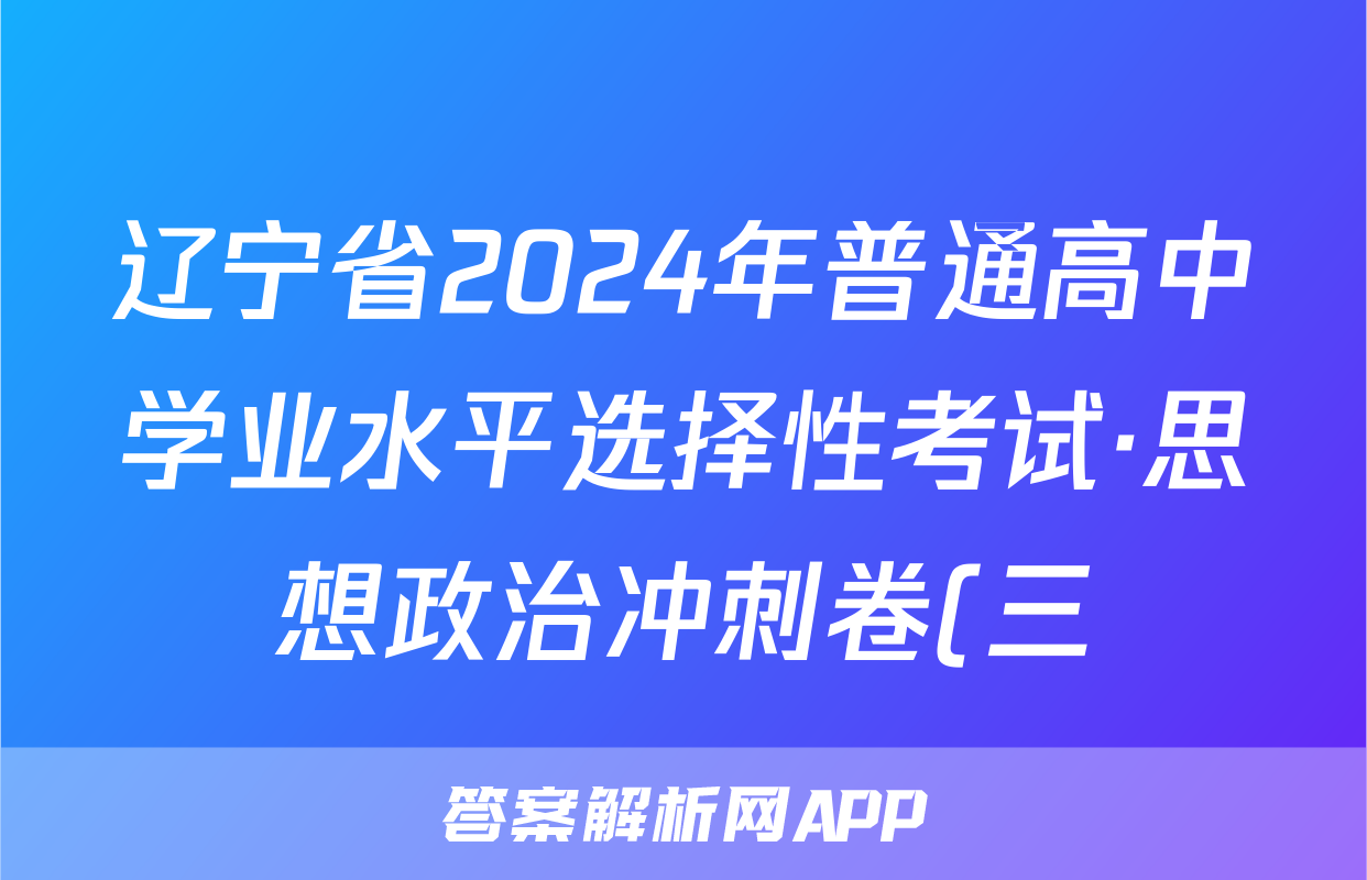 辽宁省2024年普通高中学业水平选择性考试·思想政治冲刺卷(三)3[24·(新高考)CCJ·思想政治·LN]答案正在持续更新,目前2026天舟高考答案网为大家整理了相关试题及答案,供大家查缺补漏,高效提升成绩。
