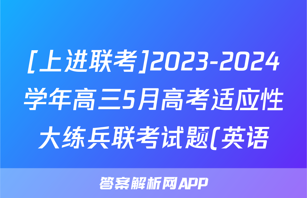 [上进联考]2023-2024学年高三5月高考适应性大练兵联考试题(英语)正在持续更新,目前2026天舟高考答案网为大家整理了相关试题及答案,供大家查缺补漏,高效提升成绩。