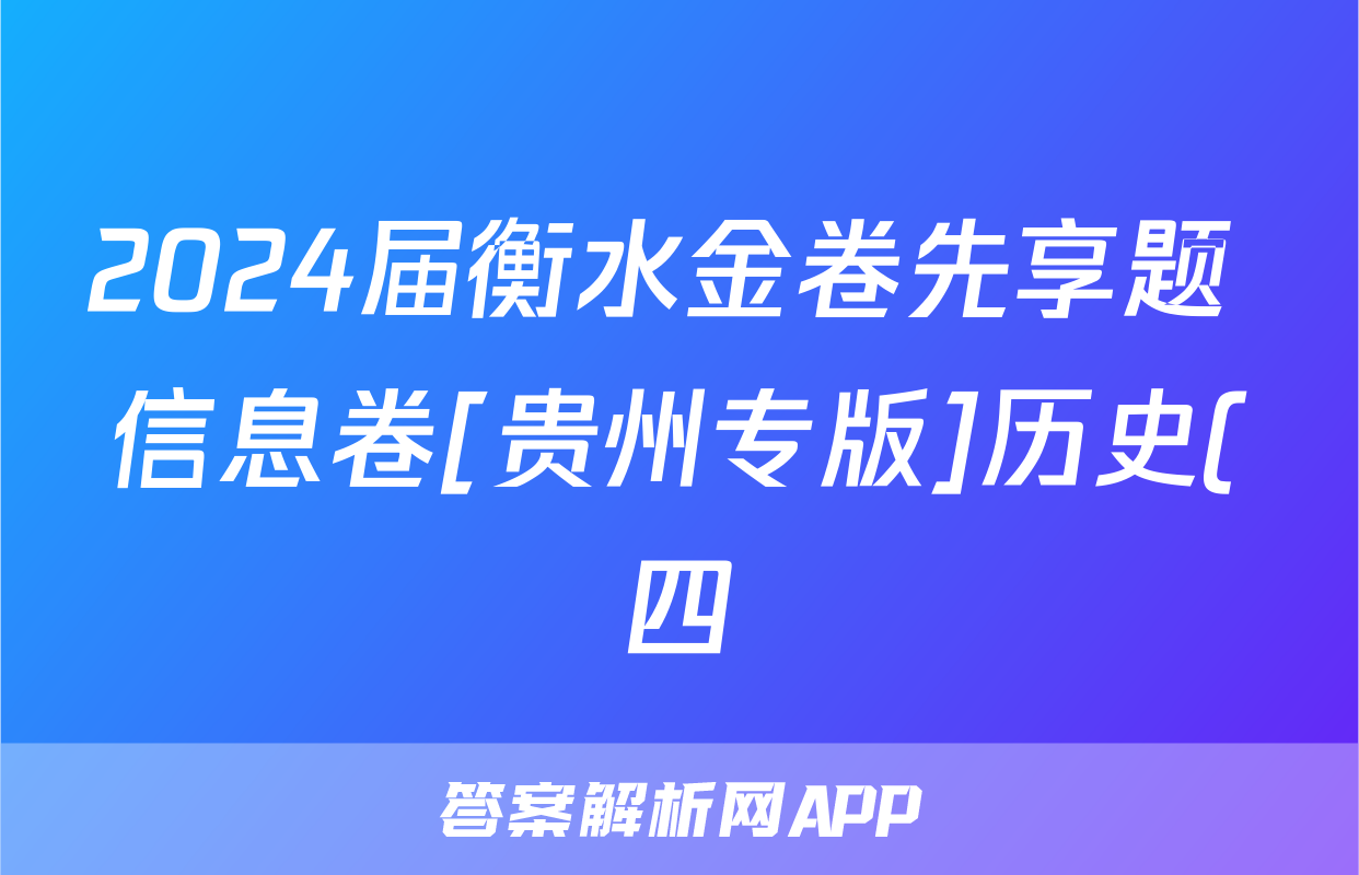 2024届衡水金卷先享题 信息卷[贵州专版]历史(四)4答案正在持续更新,目前2026天舟高考答案网为大家整理了相关试题及答案,供大家查缺补漏,高效提升成绩。