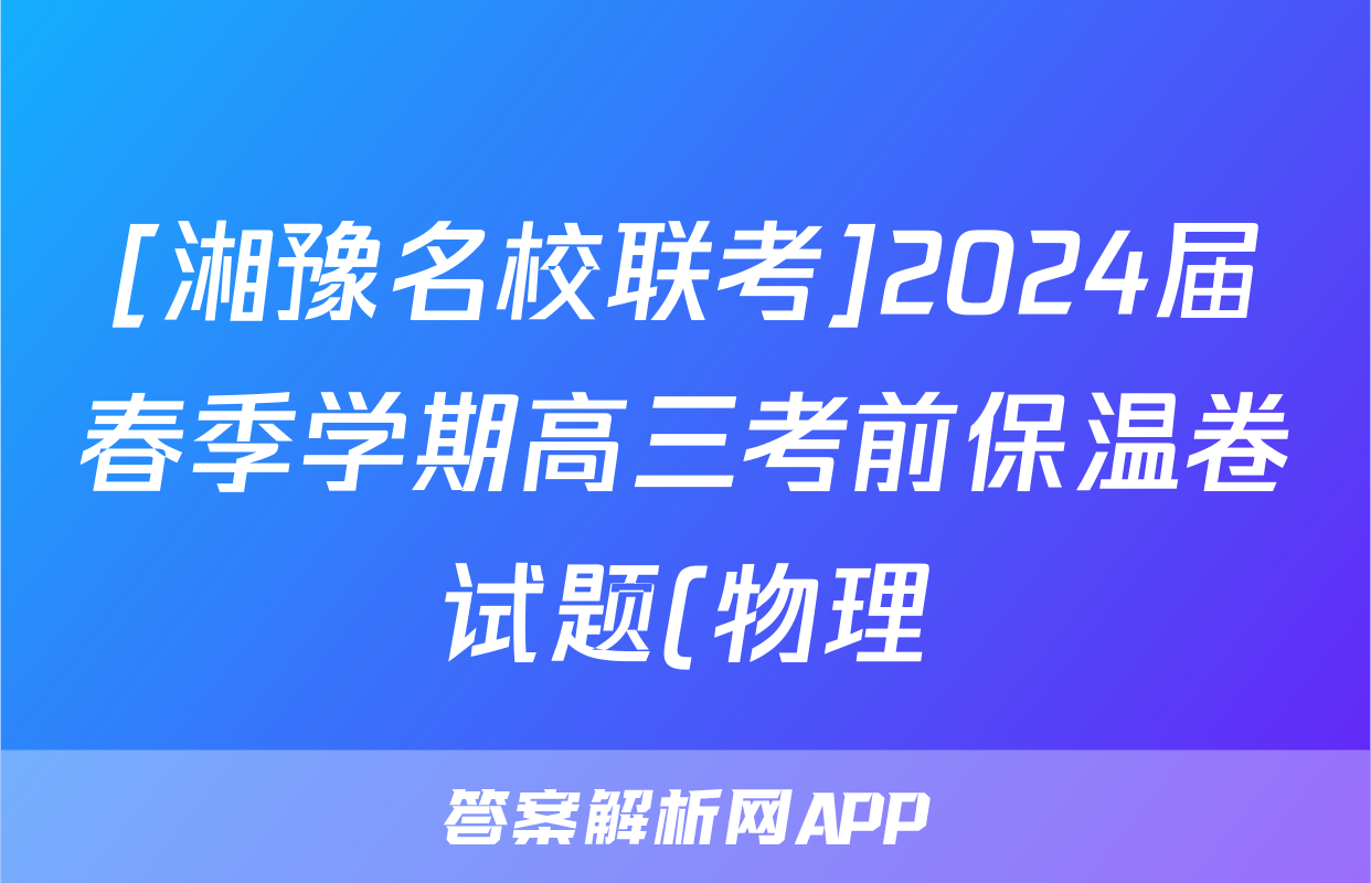 [湘豫名校联考]2024届春季学期高三考前保温卷试题(物理)正在持续更新,目前2026天舟高考答案网为大家整理了相关试题及答案,供大家查缺补漏,高效提升成绩。