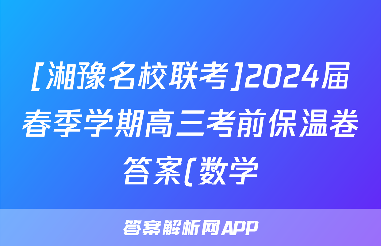 [湘豫名校联考]2024届春季学期高三考前保温卷答案(数学)正在持续更新,目前2026天舟高考答案网为大家整理了相关试题及答案,供大家查缺补漏,高效提升成绩。