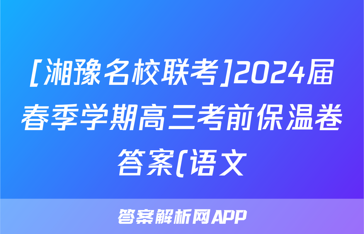 [湘豫名校联考]2024届春季学期高三考前保温卷答案(语文)正在持续更新,目前2026天舟高考答案网为大家整理了相关试题及答案,供大家查缺补漏,高效提升成绩。