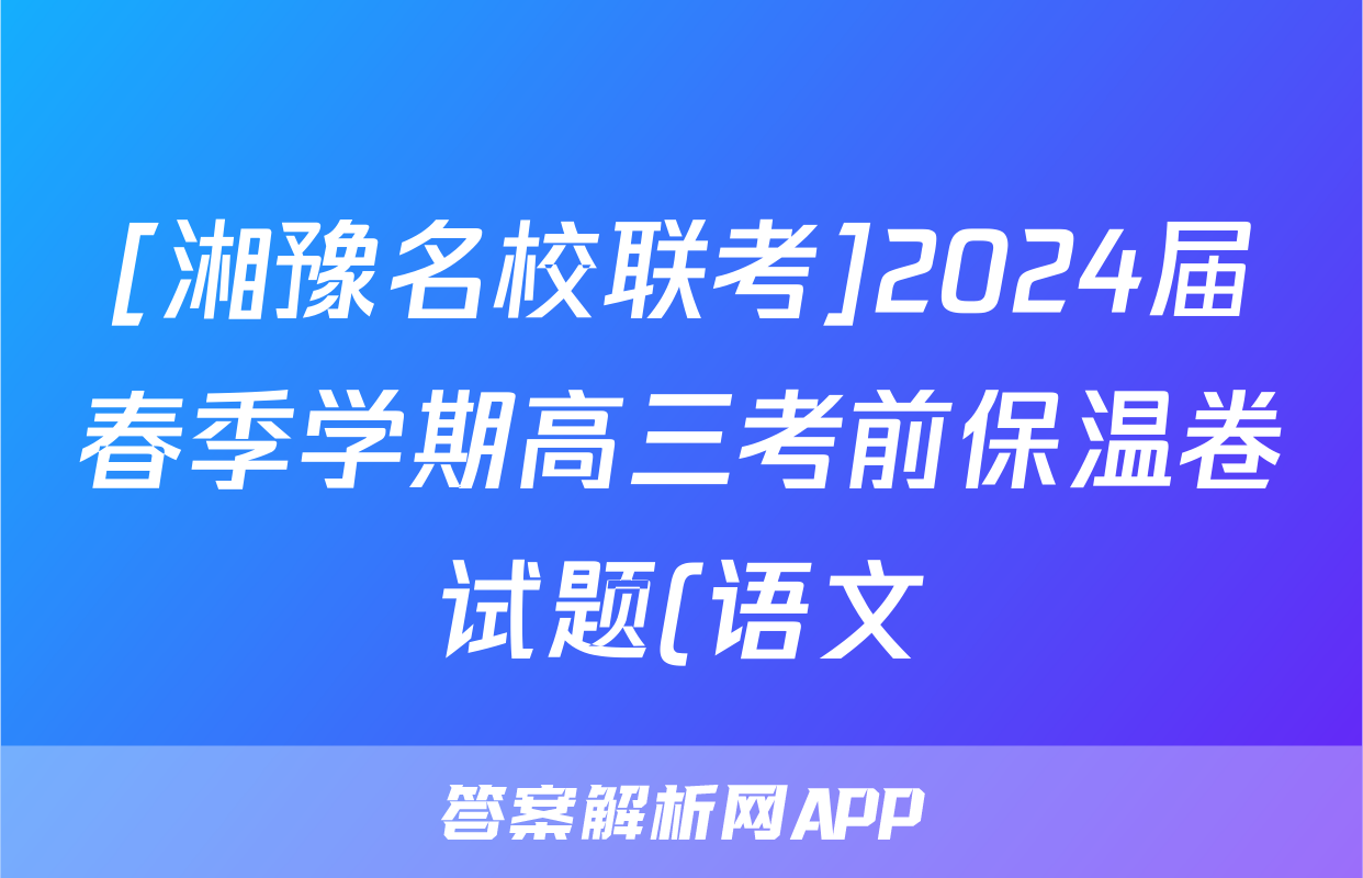 [湘豫名校联考]2024届春季学期高三考前保温卷试题(语文)正在持续更新,目前2026天舟高考答案网为大家整理了相关试题及答案,供大家查缺补漏,高效提升成绩。