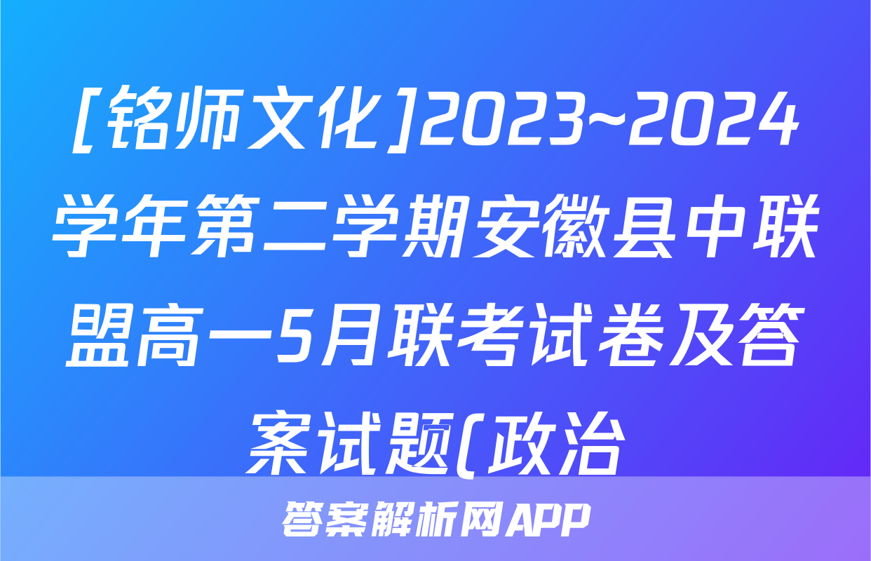 [铭师文化]2023~2024学年第二学期安徽县中联盟高一5月联考试卷及答案试题(政治)正在持续更新,目前2026天舟高考答案网为大家整理了相关试题及答案,供大家查缺补漏,高效提升成绩。
