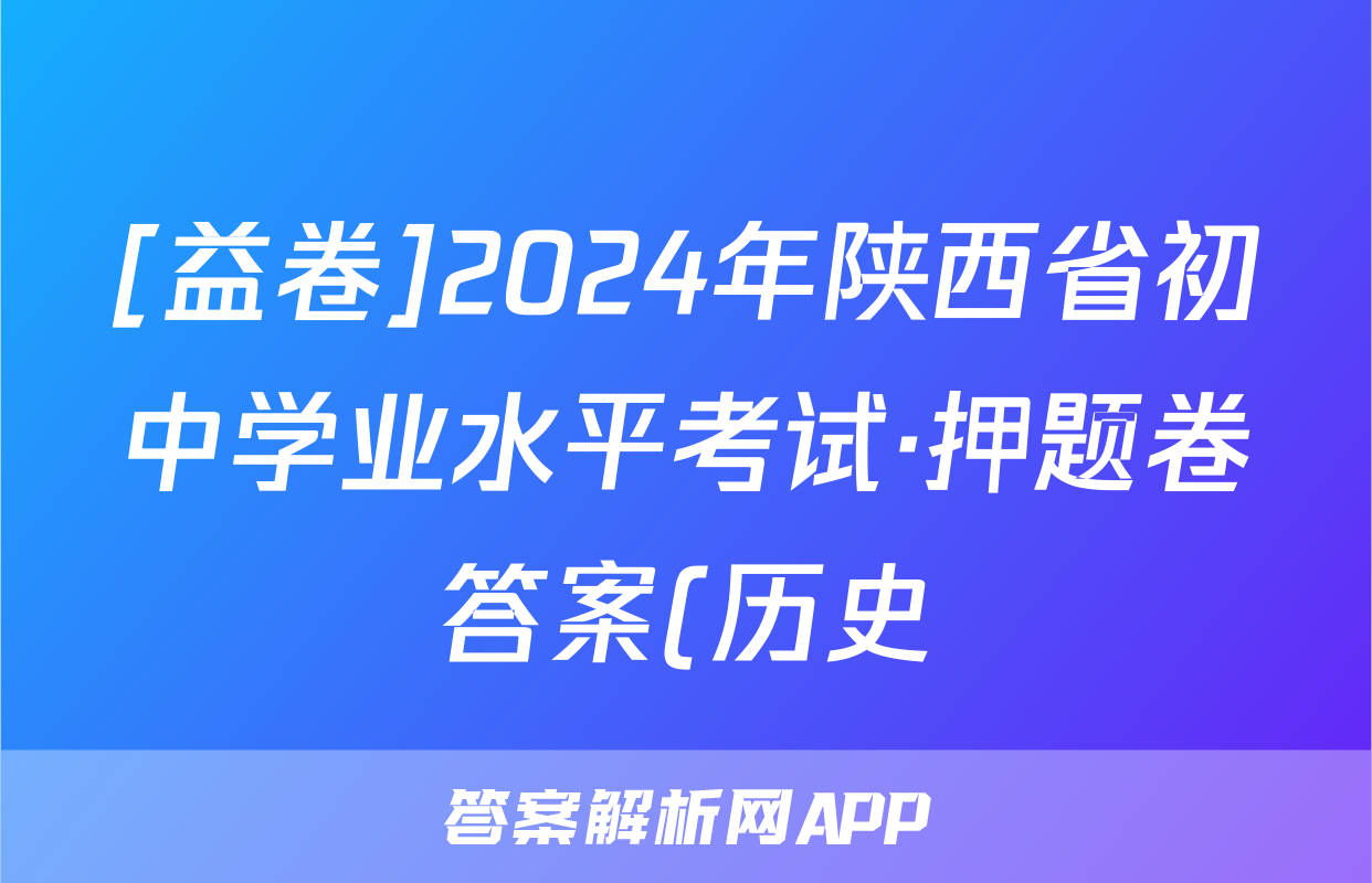 [益卷]2024年陕西省初中学业水平考试·押题卷答案(历史)正在持续更新,目前2026天舟高考答案网为大家整理了相关试题及答案,供大家查缺补漏,高效提升成绩。