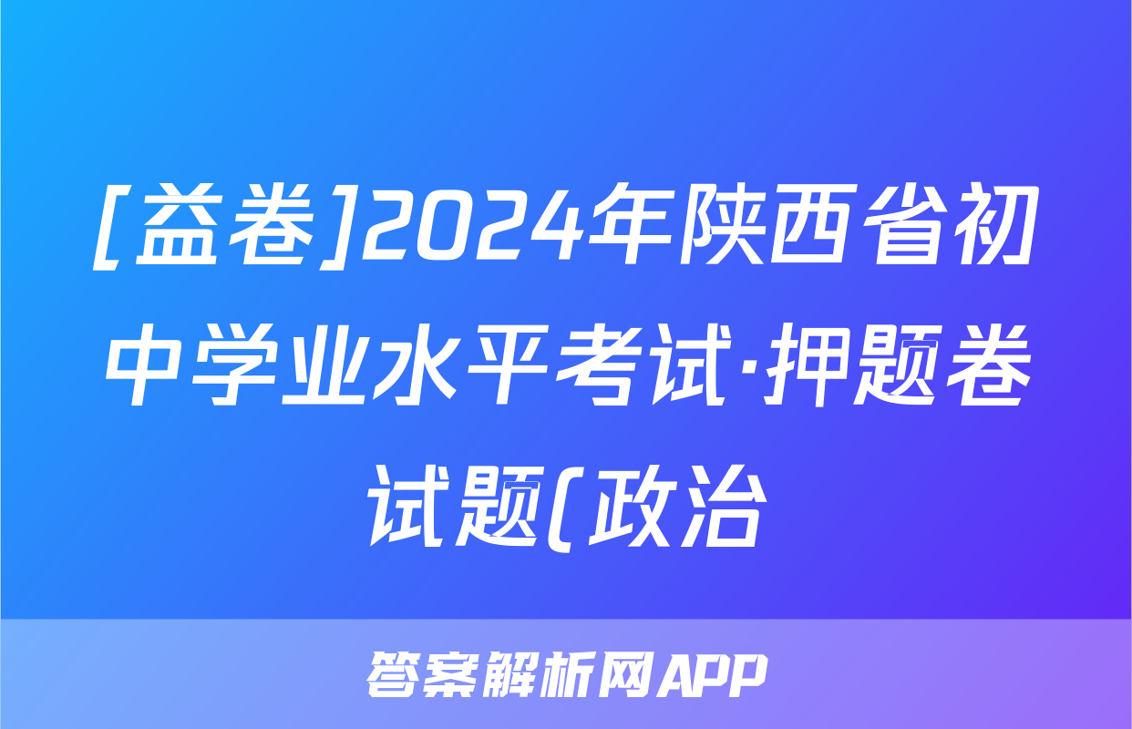 [益卷]2024年陕西省初中学业水平考试·押题卷试题(政治)正在持续更新,目前2026天舟高考答案网为大家整理了相关试题及答案,供大家查缺补漏,高效提升成绩。