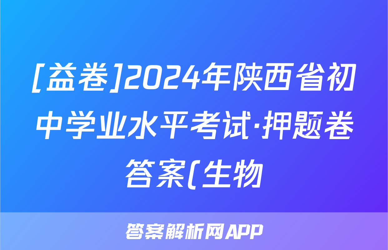 [益卷]2024年陕西省初中学业水平考试·押题卷答案(生物)正在持续更新,目前2026天舟高考答案网为大家整理了相关试题及答案,供大家查缺补漏,高效提升成绩。