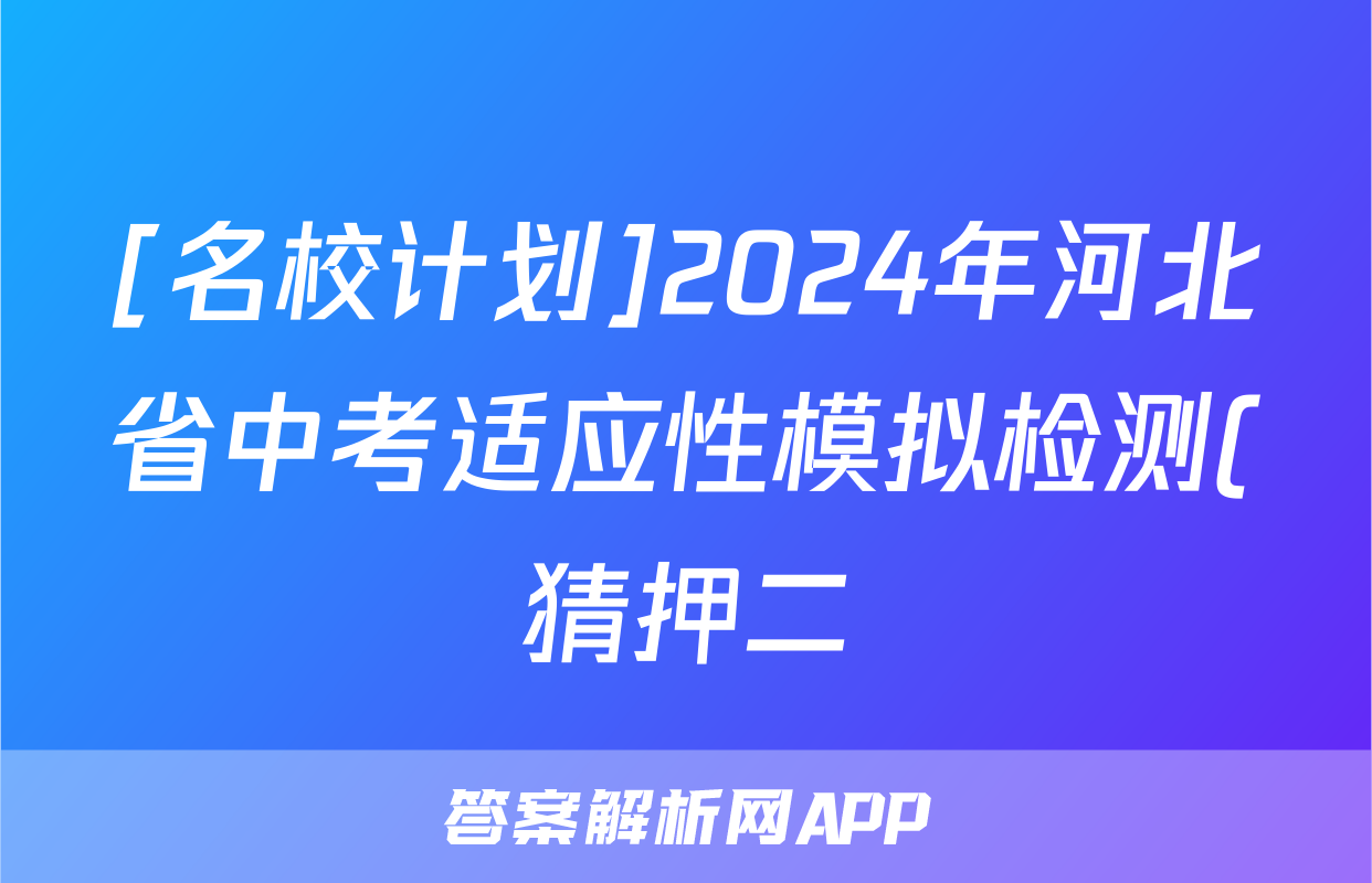 [名校计划]2024年河北省中考适应性模拟检测(猜押二)试题(化学)正在持续更新,目前2026天舟高考答案网为大家整理了相关试题及答案,供大家查缺补漏,高效提升成绩。