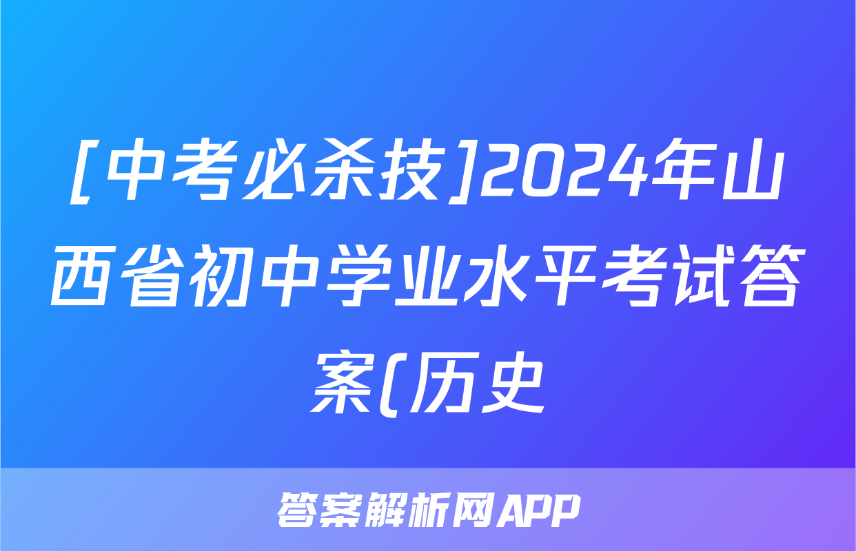 [中考必杀技]2024年山西省初中学业水平考试答案(历史)正在持续更新,目前2026天舟高考答案网为大家整理了相关试题及答案,供大家查缺补漏,高效提升成绩。