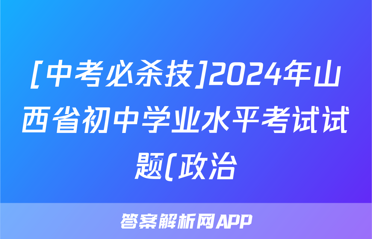 [中考必杀技]2024年山西省初中学业水平考试试题(政治)正在持续更新,目前2026天舟高考答案网为大家整理了相关试题及答案,供大家查缺补漏,高效提升成绩。