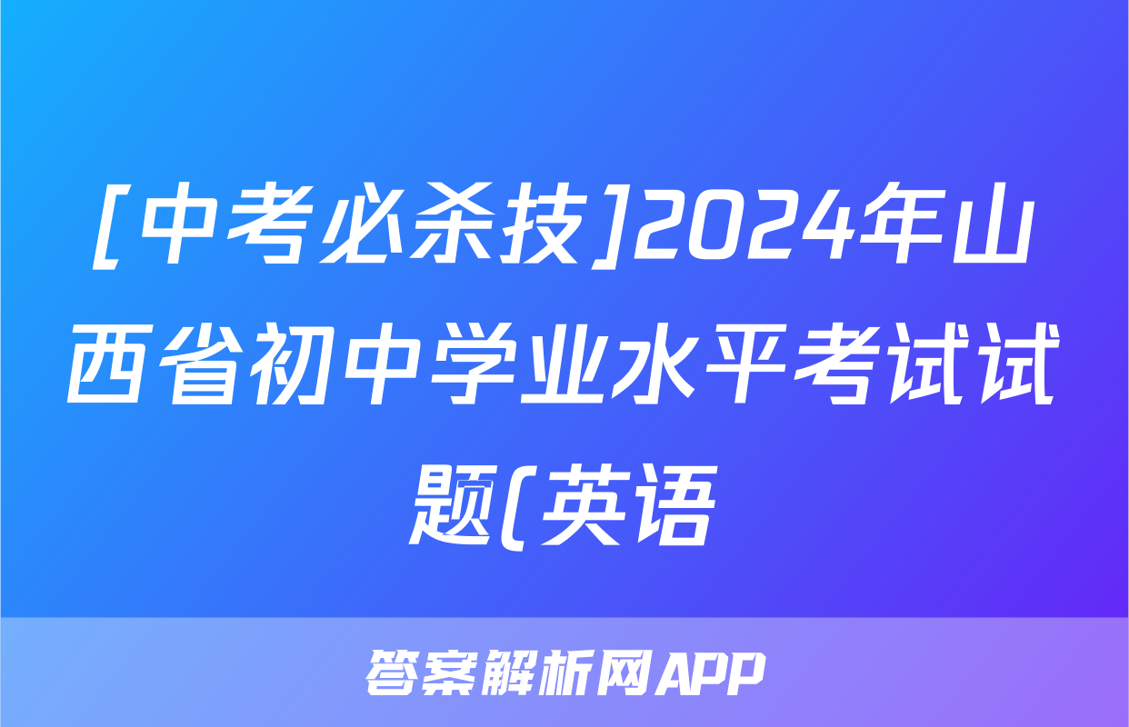[中考必杀技]2024年山西省初中学业水平考试试题(英语)正在持续更新,目前2026天舟高考答案网为大家整理了相关试题及答案,供大家查缺补漏,高效提升成绩。