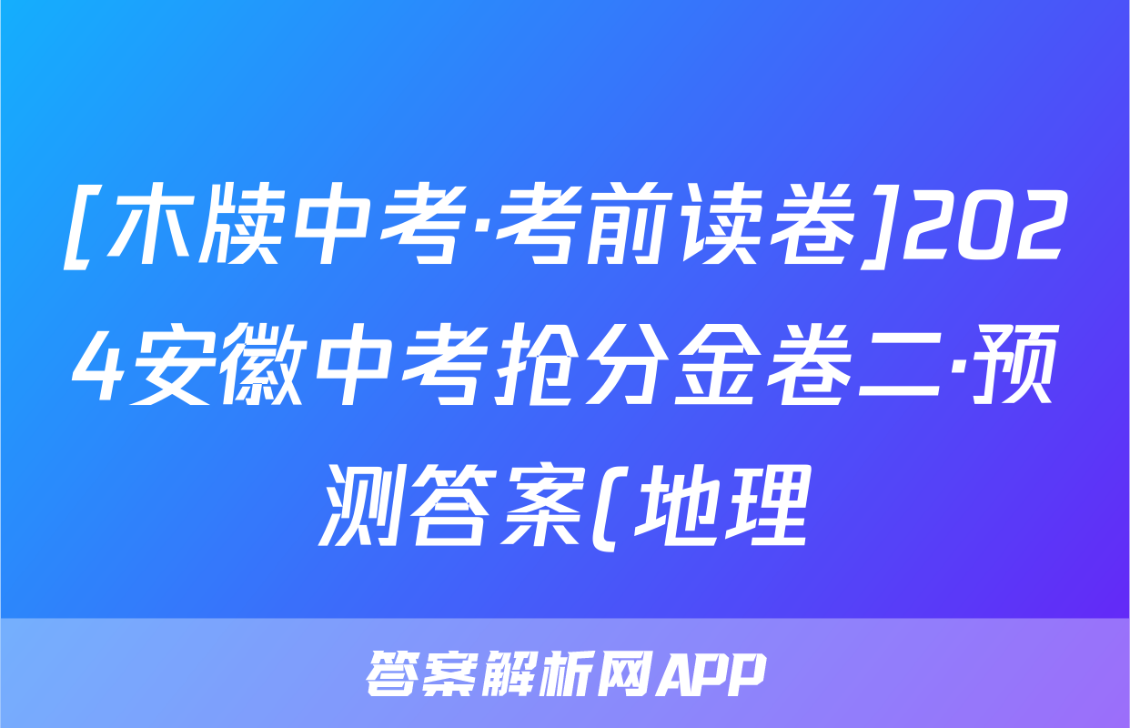 [木牍中考·考前读卷]2024安徽中考抢分金卷二·预测答案(地理)正在持续更新,目前2026天舟高考答案网为大家整理了相关试题及答案,供大家查缺补漏,高效提升成绩。