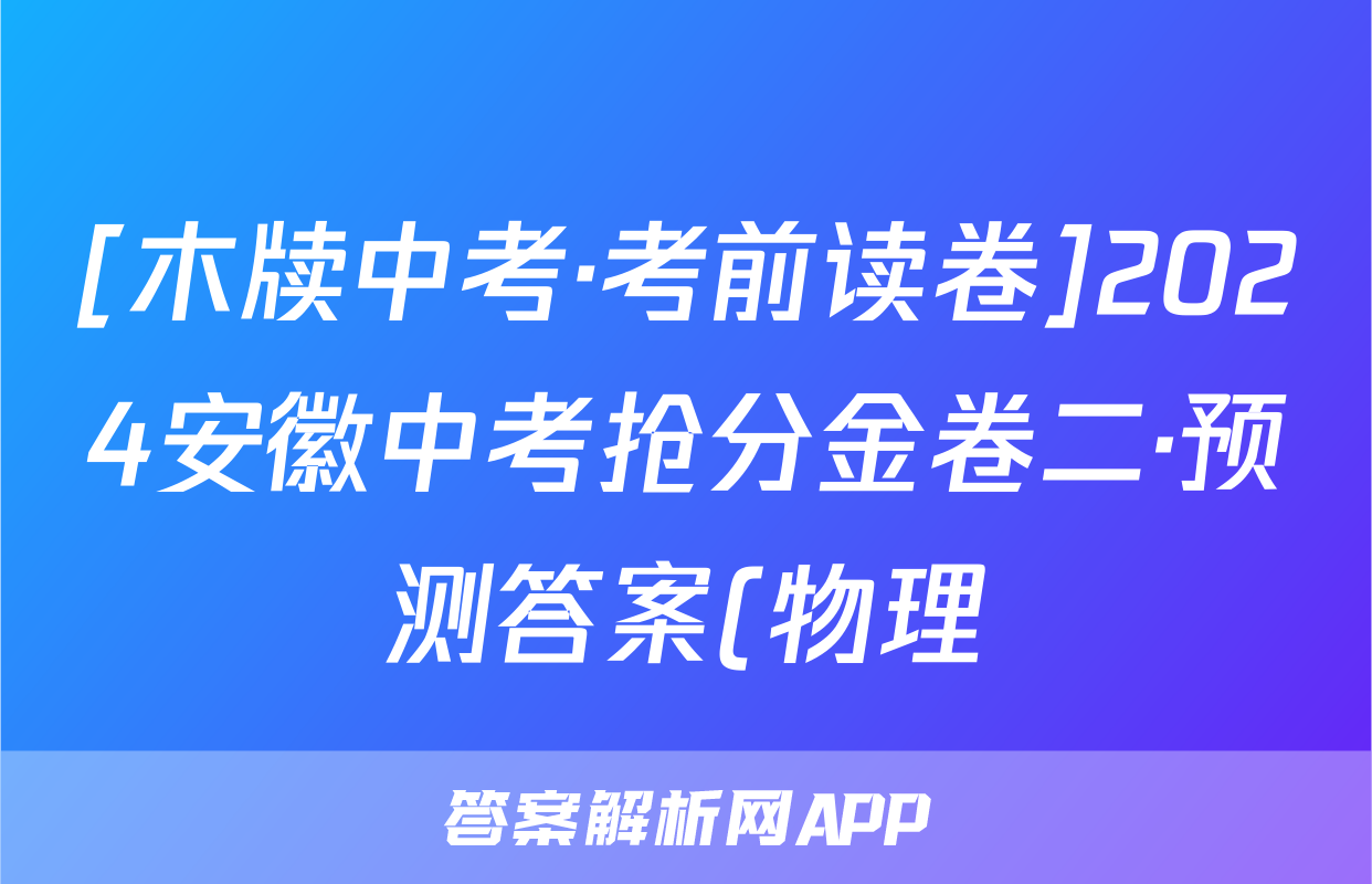 [木牍中考·考前读卷]2024安徽中考抢分金卷二·预测答案(物理)正在持续更新,目前2026天舟高考答案网为大家整理了相关试题及答案,供大家查缺补漏,高效提升成绩。