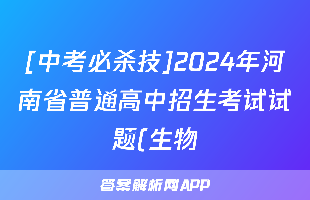 [中考必杀技]2024年河南省普通高中招生考试试题(生物)正在持续更新,目前2026天舟高考答案网为大家整理了相关试题及答案,供大家查缺补漏,高效提升成绩。