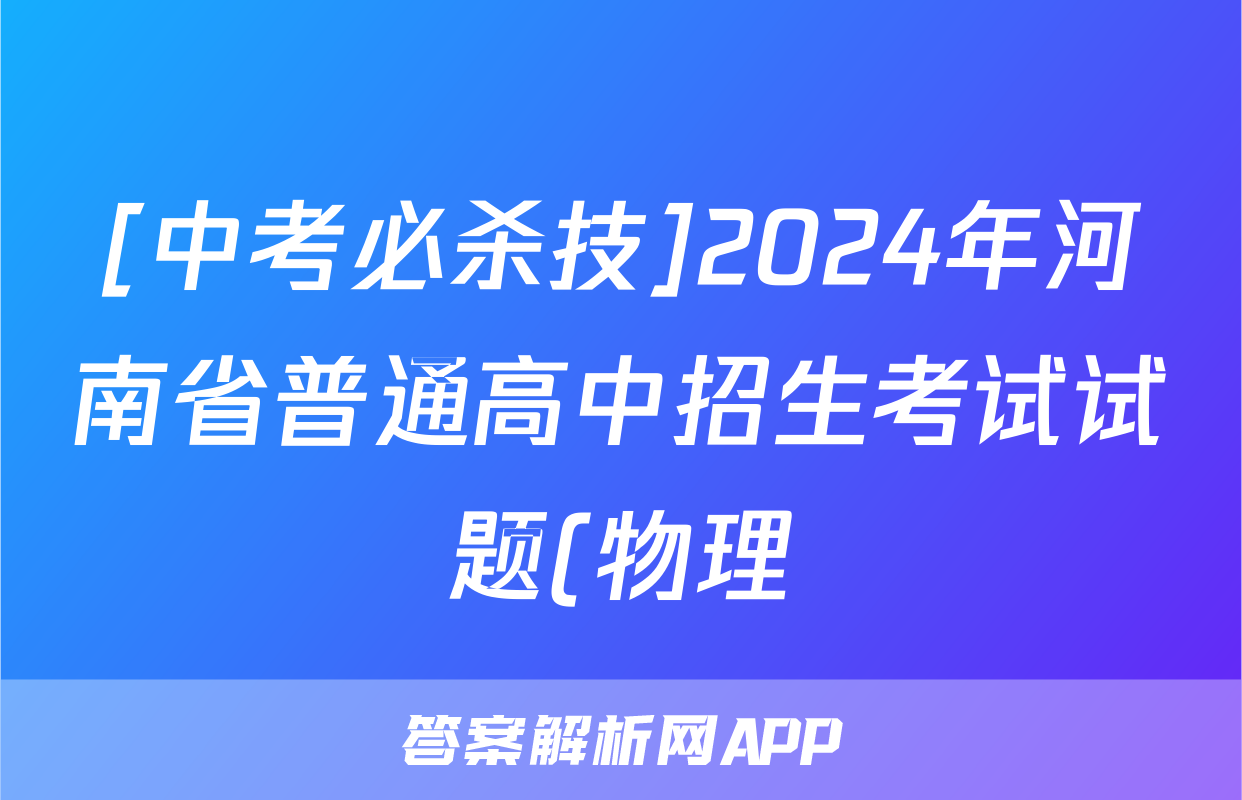 [中考必杀技]2024年河南省普通高中招生考试试题(物理)正在持续更新,目前2026天舟高考答案网为大家整理了相关试题及答案,供大家查缺补漏,高效提升成绩。