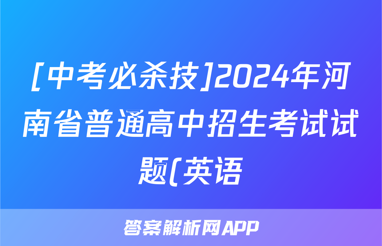 [中考必杀技]2024年河南省普通高中招生考试试题(英语)正在持续更新,目前2026天舟高考答案网为大家整理了相关试题及答案,供大家查缺补漏,高效提升成绩。